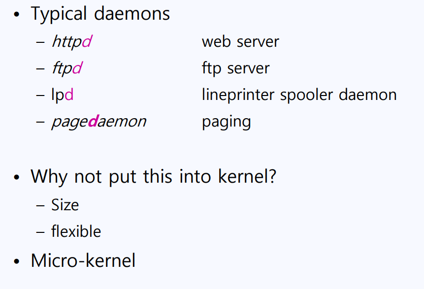 보통의 데몬(서버)에는 d자가 붙는다. 웹서버는 httpd이고 ftp 서버는 ftpd라고 표현한다.